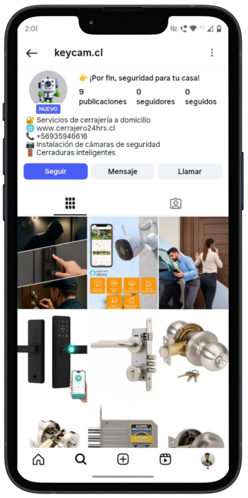 Protege lo que más importa Cerraduras de seguridad Cámaras de seguridadServicios de emergencia para autos y casas +56 9 3019 7287 ¡Se perdieron mis llaves! Abrimos autos y casas. Solucionamos todo lo relacionado con cerraduras. Cámaras de seguridad ¡Cámara HD X4 con wifi, detección de movimiento y tarjeta SD de 32 GB gratis! Cerradura de seguridad Sistemas inteligentes con huella digital, app móvil y mucho más. ¡Se perdieron mis llaves! Abrimos autos y casas. Solucionamos todo lo relacionado con cerraduras. Cámaras de seguridad ¡Cámara HD X4 con wifi, detección de movimiento y tarjeta SD de 32 GB gratis! Cerradura de seguridad Sistemas inteligentes con huella digital, app móvil y mucho más. Servicios de Emergencia Estamos ahí cuando más lo necesitas. Cámaras de Seguridad Vigila tu entorno y seres queridos con tecnología de punta. Cerraduras de Seguridad ¡Años de esfuerzo no se cuidan con tan poco! ¡Ofertas por tiempo limitado! Te damos hasta $30.000 Antes $210.000 $189.000 / Instalación Cerrojo de Seguridad Cerradura Inteligente CONTRATAR Más popular Antes $240.000 $210.000 / Instalación Cerradura Inteligente Chapa de Seguridad Cámara de Seguridad CONTRATAR Antes $160.000 $150.000 / Instalación Cerrojo de Seguridad Cámara de Seguridad CONTRATAR